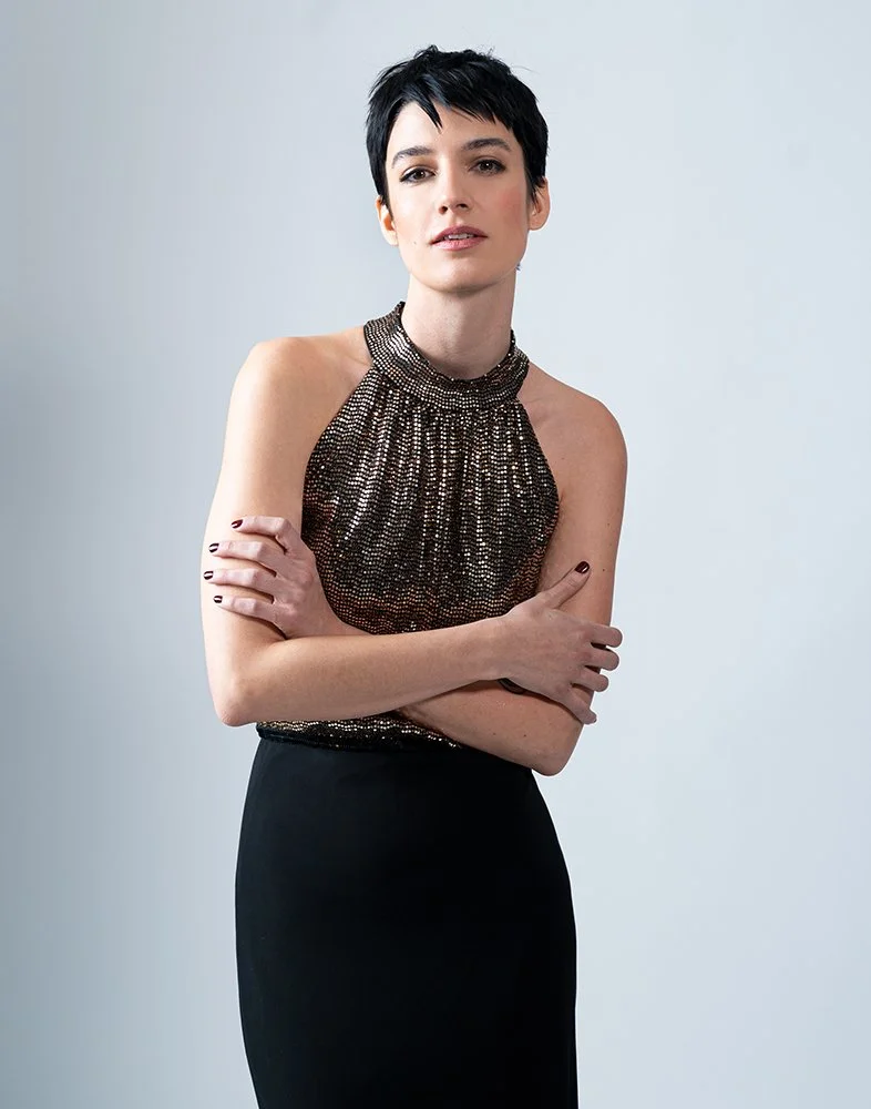 Unser Model Mira ist 174cm groß und trägt hier Größe 34